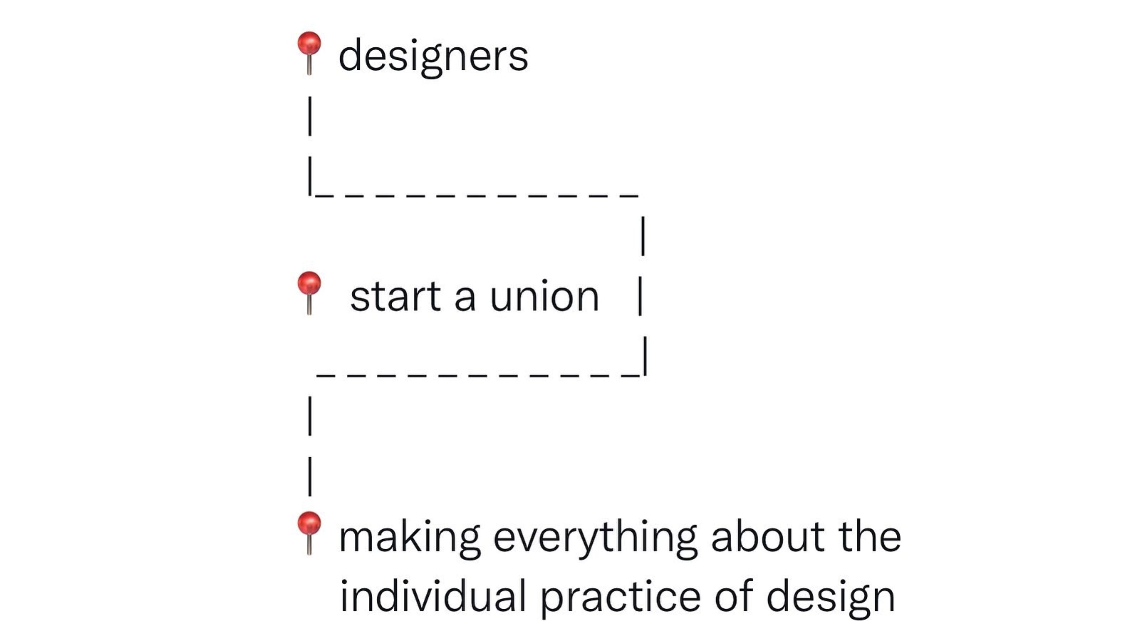 Small ingresses have been made to explore this idea on a broader scale, such as a 2018 workshop series sponsored by AIGA, the biggest graphic design organization in the US, which looked at how we can create modern design unions. Sadly, that project—apparently meant to be ongoing—seems to have died less than two years after it was birthed.